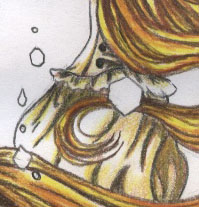 Nun können wir uns um die eigentliche Farbe kümmern. Ich hab einfach helles Braun genommen und dann über das Gelb drüber gezeichnet. Es sollte immer an einigen Stellen noch gelb durchschimmern. So bekommt das Haar einen besonderen Glanz. |